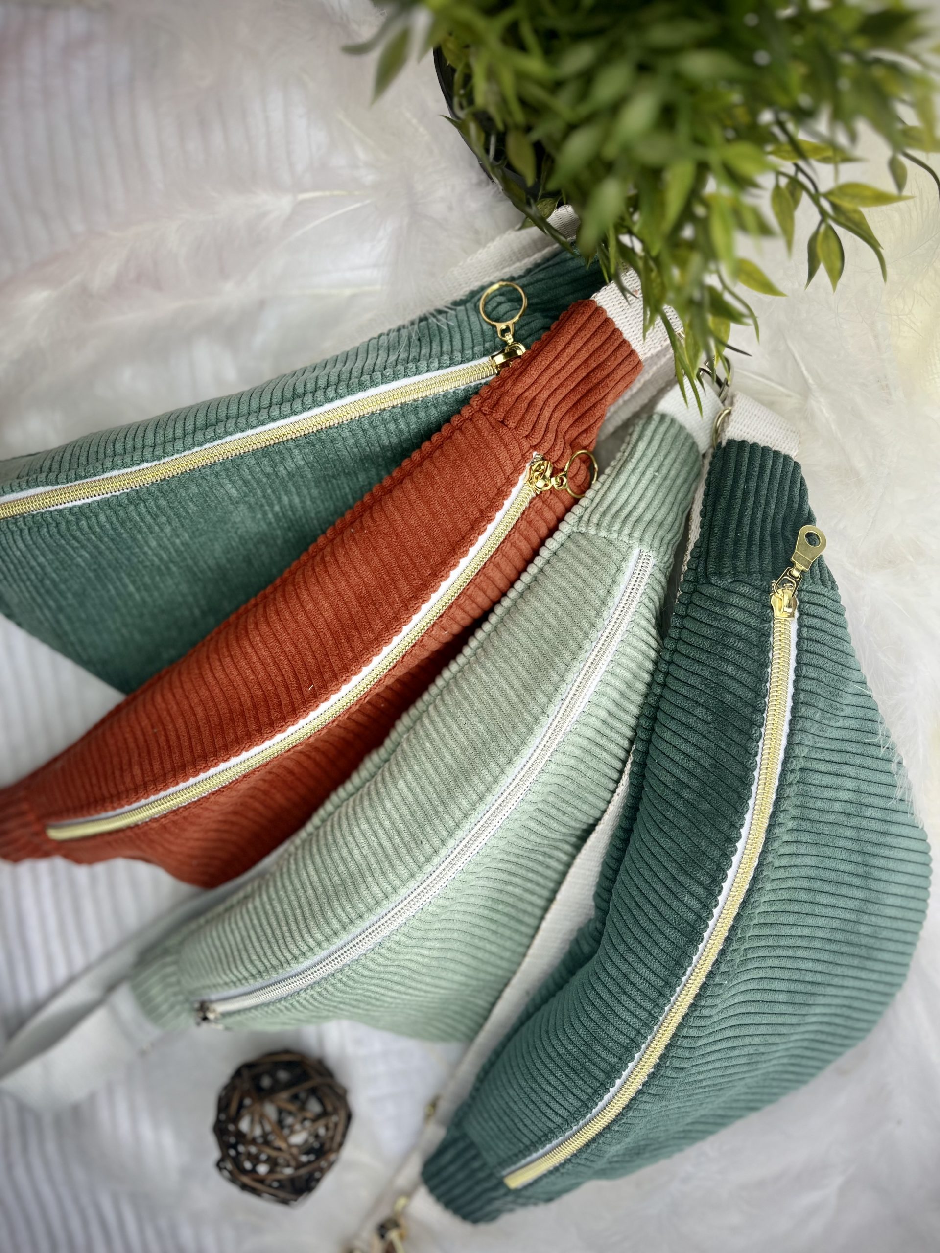 De retour dans notre quotidien, la banane est réalisée en tissu velours côtelé.